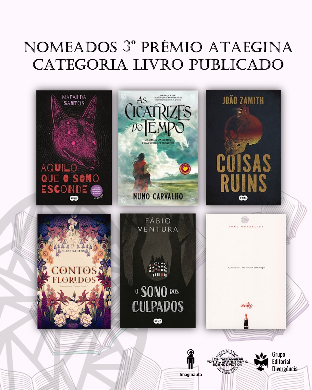 Já são conhecidos os títulos nomeados para o 3º Prémio Ataegina cat. Livro Publicado. O júri, composto por Arlete Guerreiro Gomes, Carlos Silva, Cristina Alves, Rodrigo Manhita e Nights, decidiu distinguir 6 livros publicados entre o final de 2025 e final de 2026.