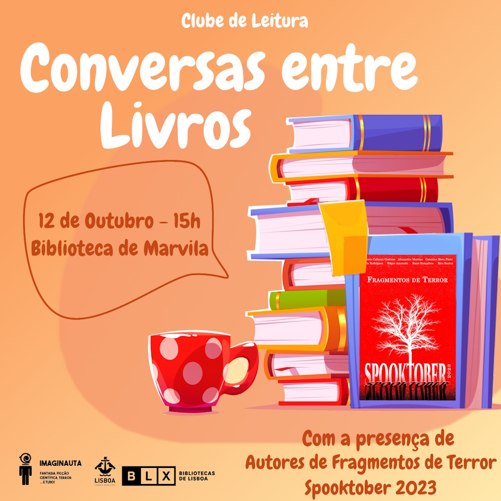 | 12 de outubro | Biblioteca de Marvila | Autores Booktober 2023 Alberto Cabrera Centeno Alexandra Martins Catarina Mota Pinto Edgar Ascensão Nuno Gonçalves Dália Rodrigues Rita Santos |