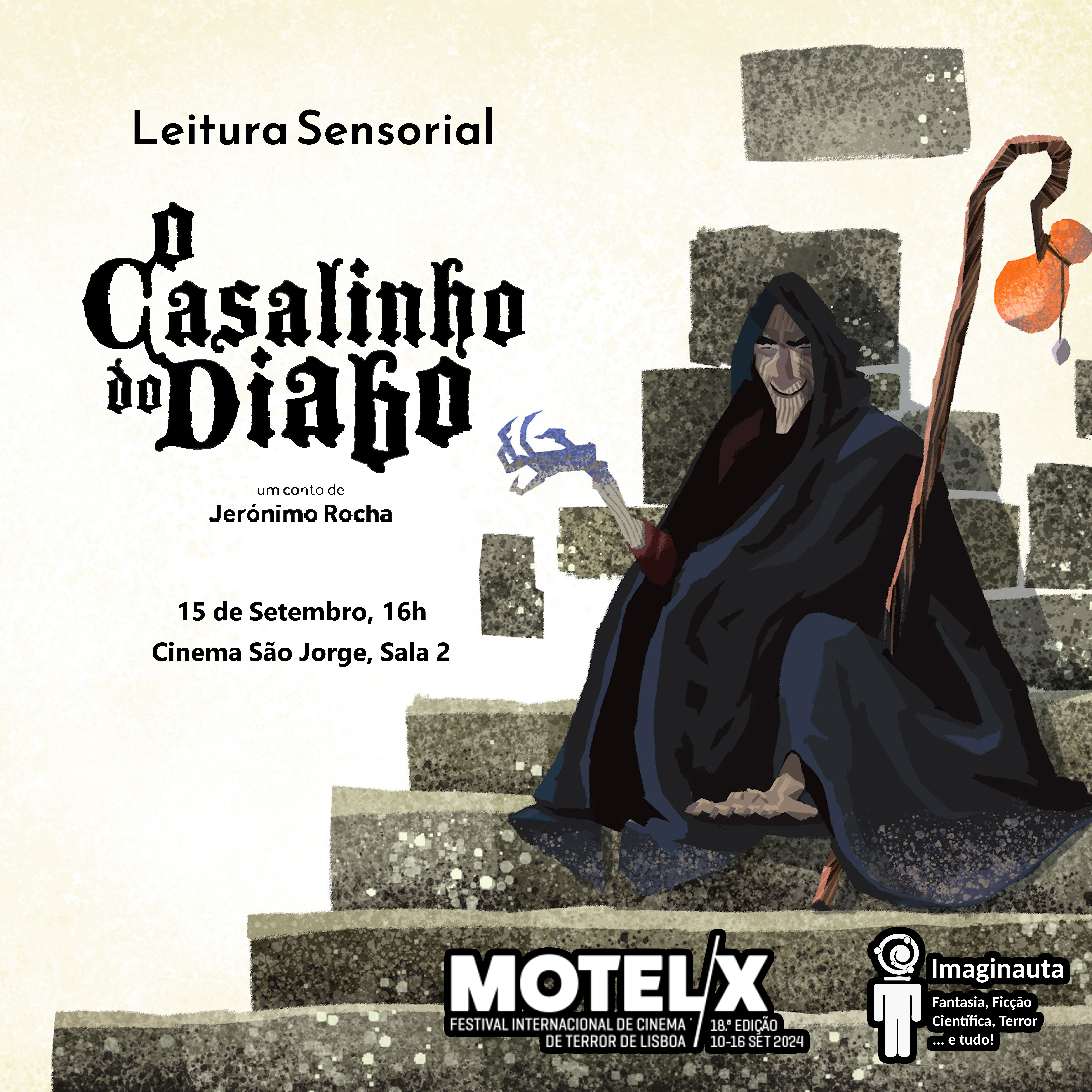 Integrado na programção infantil Lobo Mau do festival MOTELX, iremos fazer uma leitura d’O Casalinho do Diabo de Jerónimo Rocha, especialmente pensada nos mais pequenos.