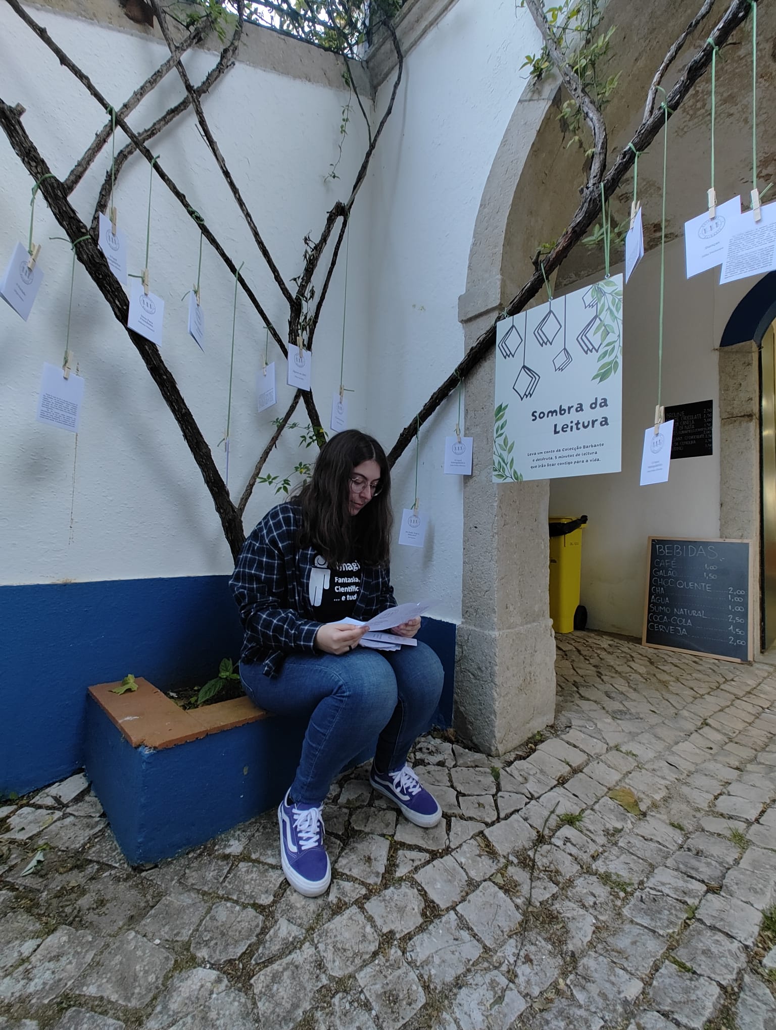 E para promover e expor os contos, criámos o “À Sombra da Leitura”, uma instalação simples e de fácil montagem no interior e exterior onde os livros da Colecção Barbante ficam à mão de semear para qualquer leitor os apanhar.